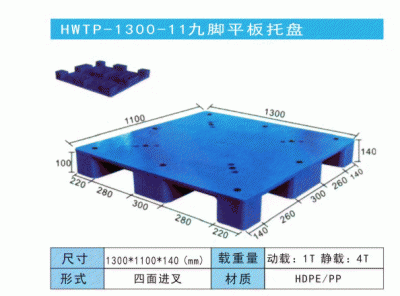 托盘(PLASTIC PALLET)是为了便于货物装卸、运输、保管和配送等而使用的、可以承载若干数量物品的负荷面和叉车插口构成的装卸用垫板。塑...